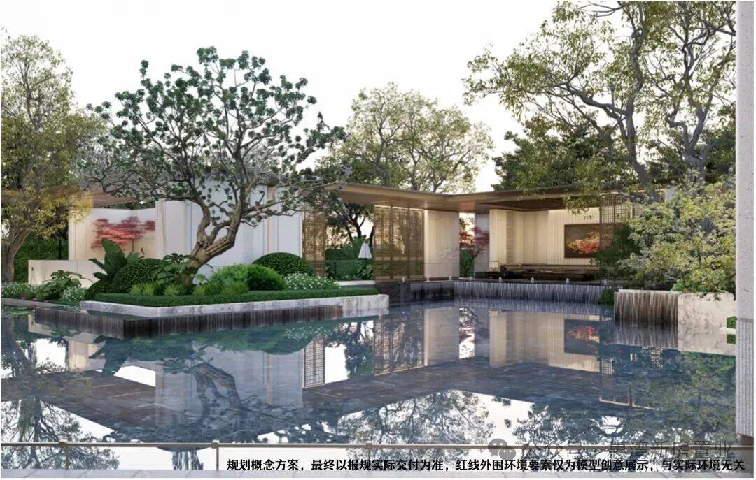 【社区迭代】复刻余荫山房设计的岭南园林,融入广雕、千年广绣、广府花窗设计,如广雕对景照壁源于余荫山房抽象龟纹石雕,寓长寿之意、镇宅安宁;广府花窗,寓意满堂富贵等,代表广府的美好祝愿