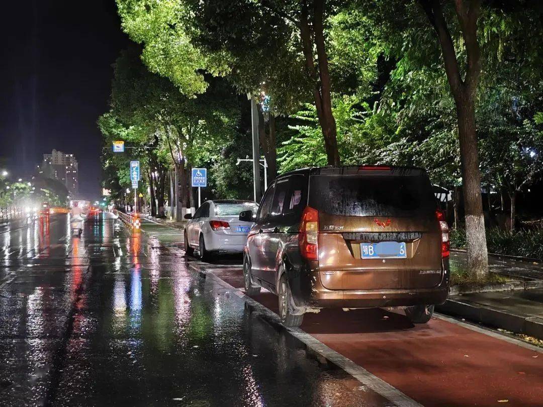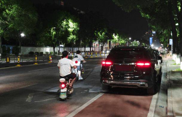 当天晚上9时左右,记者再次来到金湖大道观察发现,栅栏里面的非机动车道被不少私家车占用,致使非机动车通行受阻。多位骑行市民向记者反映,该路段机动车违停侵占非机动车道的现象已成常态,部分时段甚至出现“无路可走”的窘境。